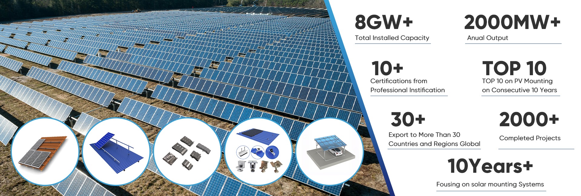 주요 제품:태양 광 장착 브래킷 액세서리, 태양 광 지상 장착 시스템, 태양 파일 지붕 장착 시스템, 태양 금속 지붕 장착 시스템, 태양 화물 장착 시스템