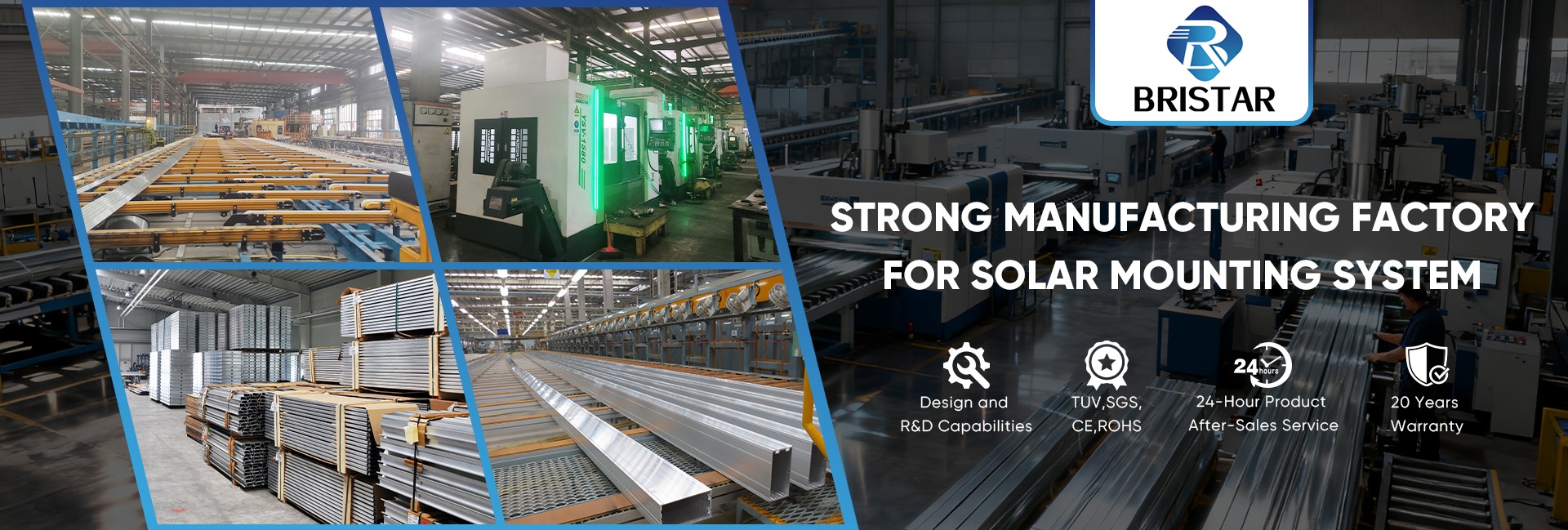 BRISTAR 100kw 태양광 시스템 접지 나사 베이스 알루미늄 태양 전지 패널 접지 마운트 시스템